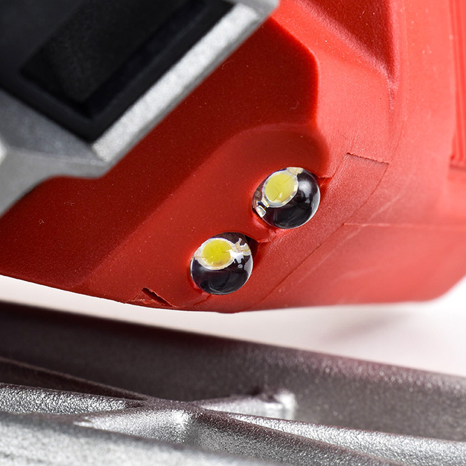 Flansch zum Ausblasen von Sägemehl und Beleuchtung des Arbeitsbereichs mit zwei LEDs
