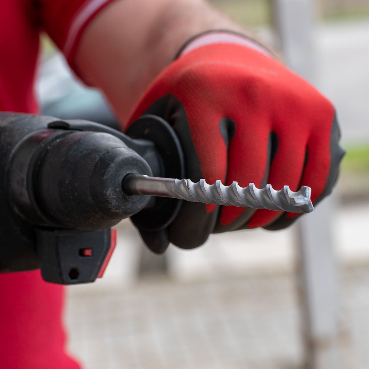 - Zum Bohren in Mauerwerk, Ziegel, Stein, Beton (auch Beton mit Armierung) und anderen Baustoffen mit Bohrhämmern mit SDS-plus-Schnellspannsystem